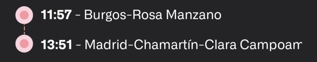 La vuelta también es sencilla, aunque por logística nos encaja mejor hacer cambio de tren en Madrid. Tras completar la segunda etapa y superar la larga y poco agradecida entrada a Burgos, nos dirigimos directamente a la estación. Desde allí, tomamos un tren a media mañana hasta Madrid y, desde allí, otro hacia Barcelona.