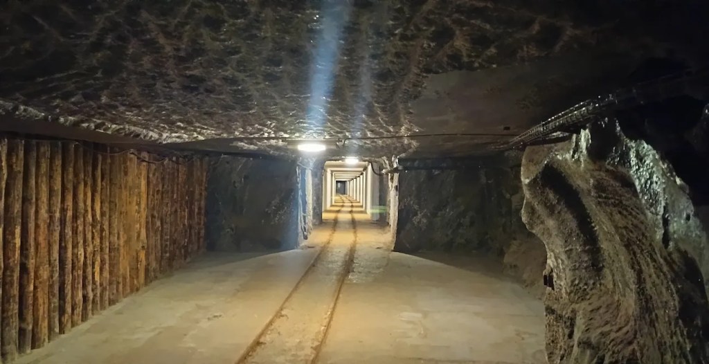Esto implica túneles, túneles y más túneles de recorrido por el interior de una mina de sal (con suelo, paredes y techos de sal).