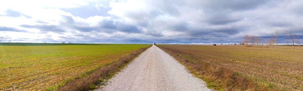 Llanuras infinitas, silencio e introspección en plena Meseta. Un tramo solitario que contrasta con una entrada a León larga y bastante ingrata.