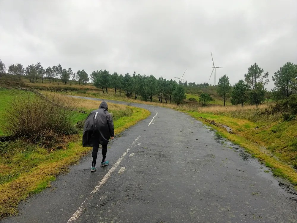 La larga jornada de hoy fue pasada por agua de principio a fin, con ese típico tiempo gallego que convierte caminar bajo la lluvia en una especie de experiencia espiritual (por no decir resignación absoluta).