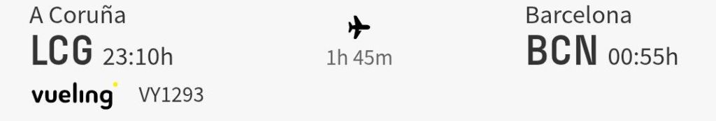 Y para volver de Finisterre a Barcelona combinando autobuses + avión, esta es la combinación de horarios que os recomendamos y que a nosotros nos funcionó perfectamente: