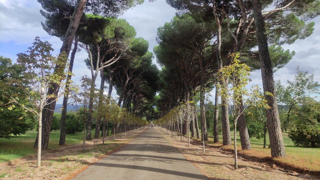 Desde la estación de El Escorial iniciamos un tramo agradable a pie que nos lleva hasta el municipio vecino de San Lorenzo del Escorial, donde se encuentra el histórico Monasterio de El Escorial. Este paseo atraviesa el bonito Parque de la Casita del Príncipe y es totalmente opcional: si se va justo de tiempo, se puede evitar en autobús, pero nosotros decidimos disfrutarlo caminando, disfrutando de los primeros pasos de la ruta y del entorno.