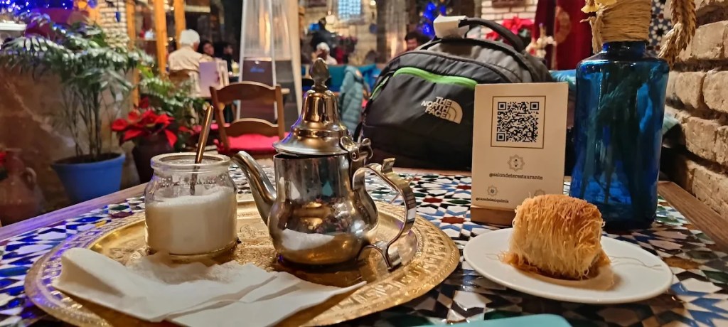 Nosotros disfrutamos del ambiente, del té moruno y de las pastitas tradicionales en el Salón de Té de Córdoba (lo peor el nombre del local, sin olvidarse, tampoco, de las sillas de los pitufos, que si mides casi dos metros, pues es un problema).