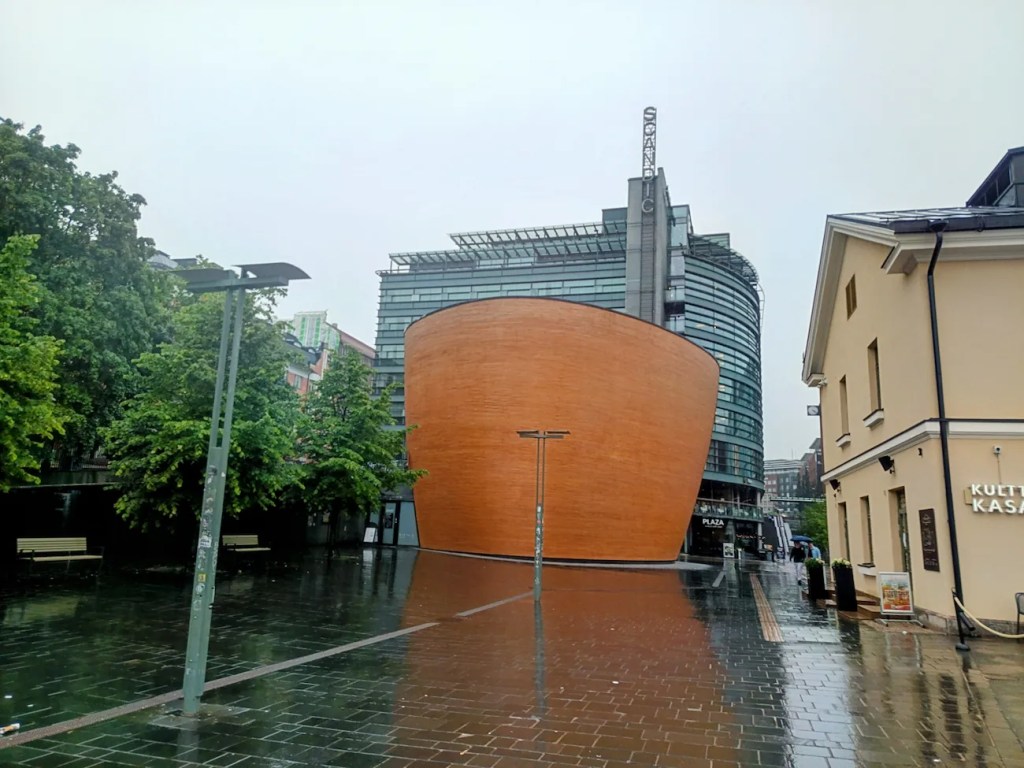 La Capilla de Kamppi (o del Silencio), que nos pareció muy extraña en medio de una plaza peatonal de un centro comercial.