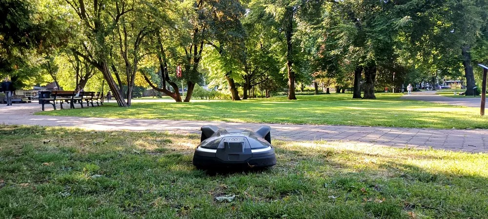 Hablando de parques, nos sorprendió lo cuidados que están y nos maravilló que el césped lo cortaran robots corta-césped.