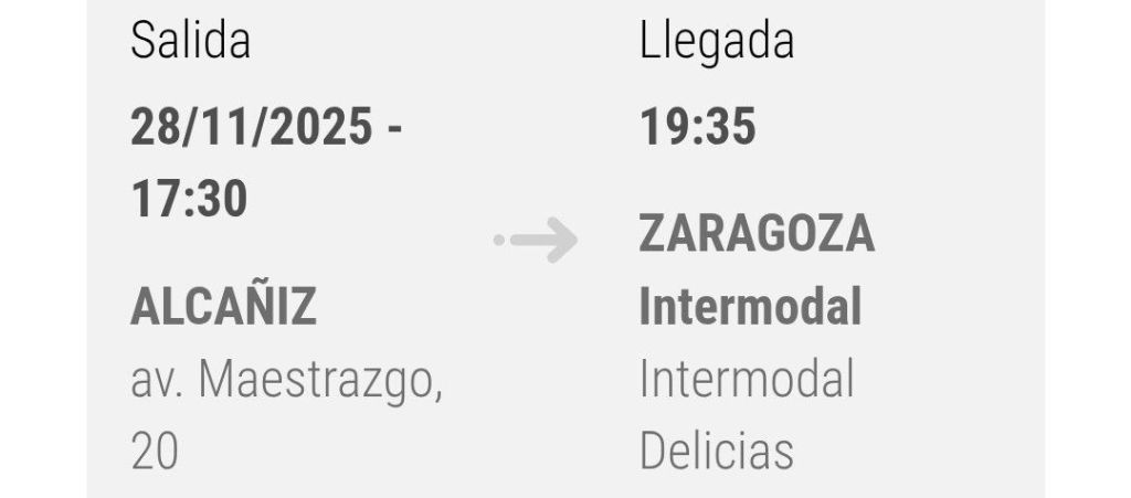 Vuelta a casa: de Alcañiz a Zaragoza en autobús, y tren a Barcelona