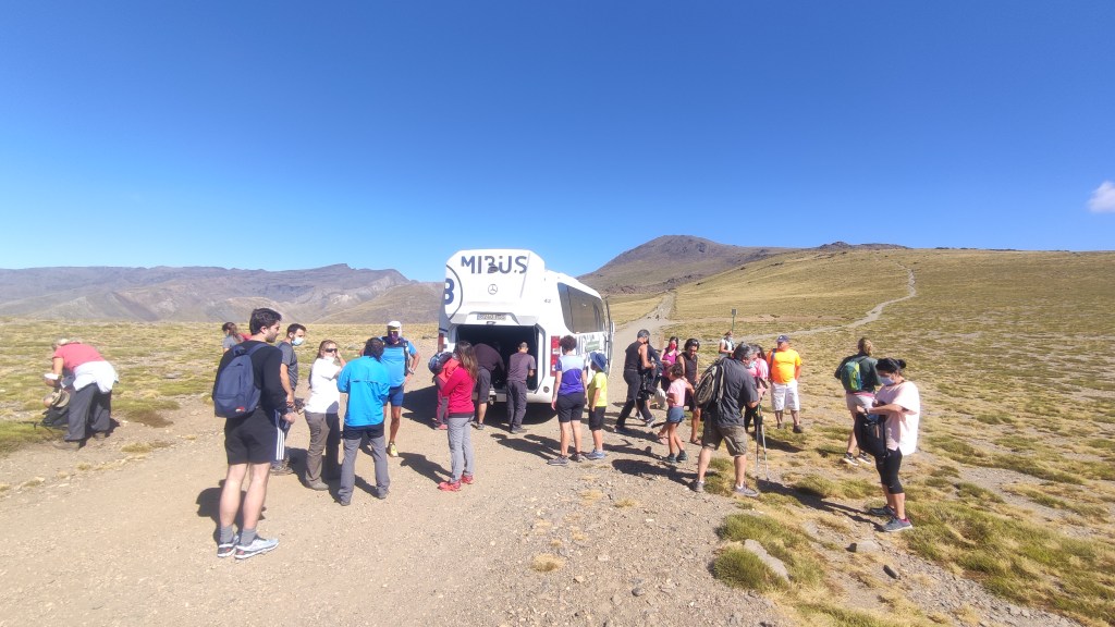 Y es que, ¡sorpresa! El autobús todoterreno que nos sube desde Capileira, situada a 1.430 metros, hasta el Alto del Chorrillo, a una impresionante cota de 2.700 metros, no sale hasta las 8:30 de la mañana.