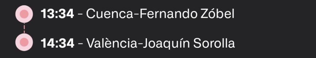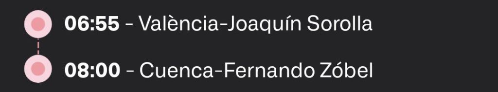 A continuación detallamos todas las combinaciones de tren que utilizamos y que recomendamos para encajar este viaje de dos días de forma lógica y eficiente. Son trayectos directos, bien conectados y pensados para optimizar tiempos sin complicaciones ni prisas: