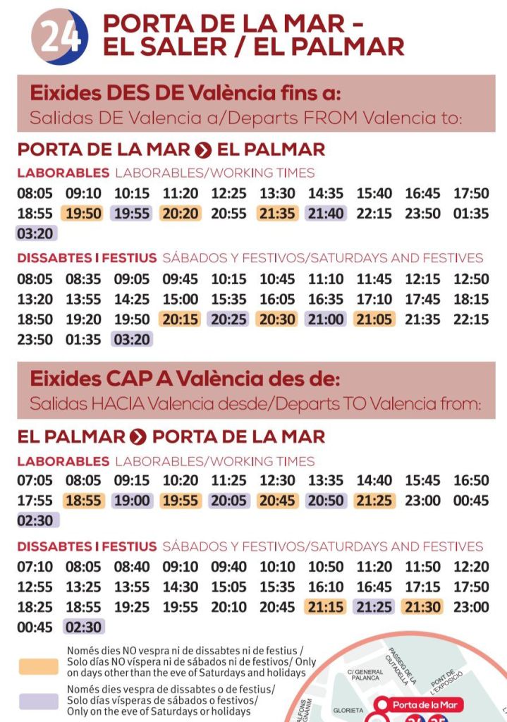 Y aquí os dejamos los horarios de invierno (en verano hay más) de los autobuses para que podáis organizaros a vuestro gusto y cuadrar la paella como Dios manda. 🍽️🥘